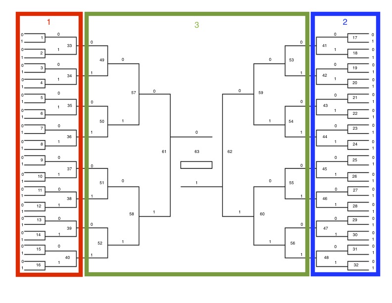 It turns out that it’s easier to test out some code than it is to write about that code in detail. As a result, this blog is lagging a bit behind the progress of the perfect bracket programming challenge. It’s probably a good time for an update, though, so here’s a bit of information on my first attempts at generating a perfect bracket.